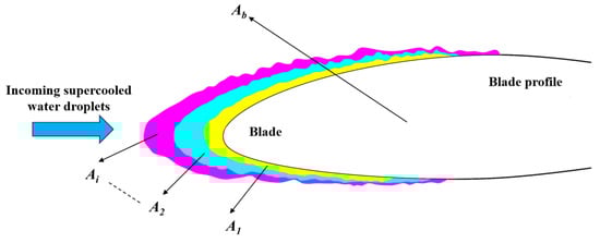 where Ai is the increased area of blade icing at the i-th time interval of each icing test; Ab is the cross-sectional area of the blade, as shown in Figure 3.
