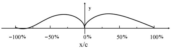 In this study, the chord length of the blade is subjected to nondimensionalization, and its position is labeled. Taking the DU25_A17 airfoil as an example, the positive direction of the horizontal axis in the Figure 5 represents the upper airfoil surface of the blade, while the negative direction represents the lower airfoil surface. The symbol c denotes the chord length of the blade, and x/c represents the relative position along the blade chord length, as shown in the schematic diagram in Figure 5.