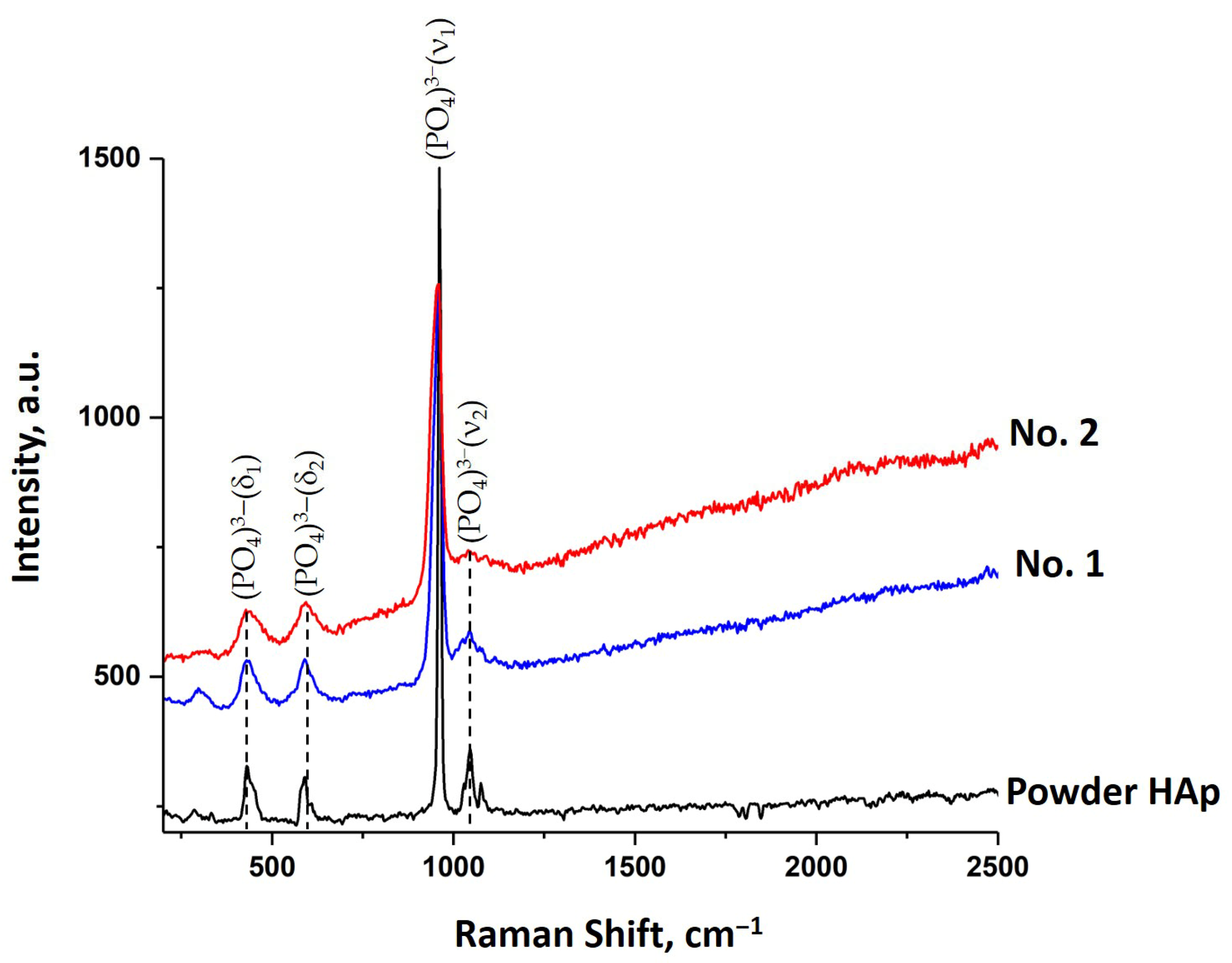 - Baizhan, D.; Sagdoldina, Z.; Buitkenov, D.; Kambarov, Y.; Nabioldina, A.; Zhumabekova, V.; Bektasova, G. Study of the Structural-Phase State of Hydroxyapatite Coatings Obtained by Detonation Spraying at Different O2/C2H2 Ratios. Crystals 2023, 13, 1564. [Google Scholar] [CrossRef]