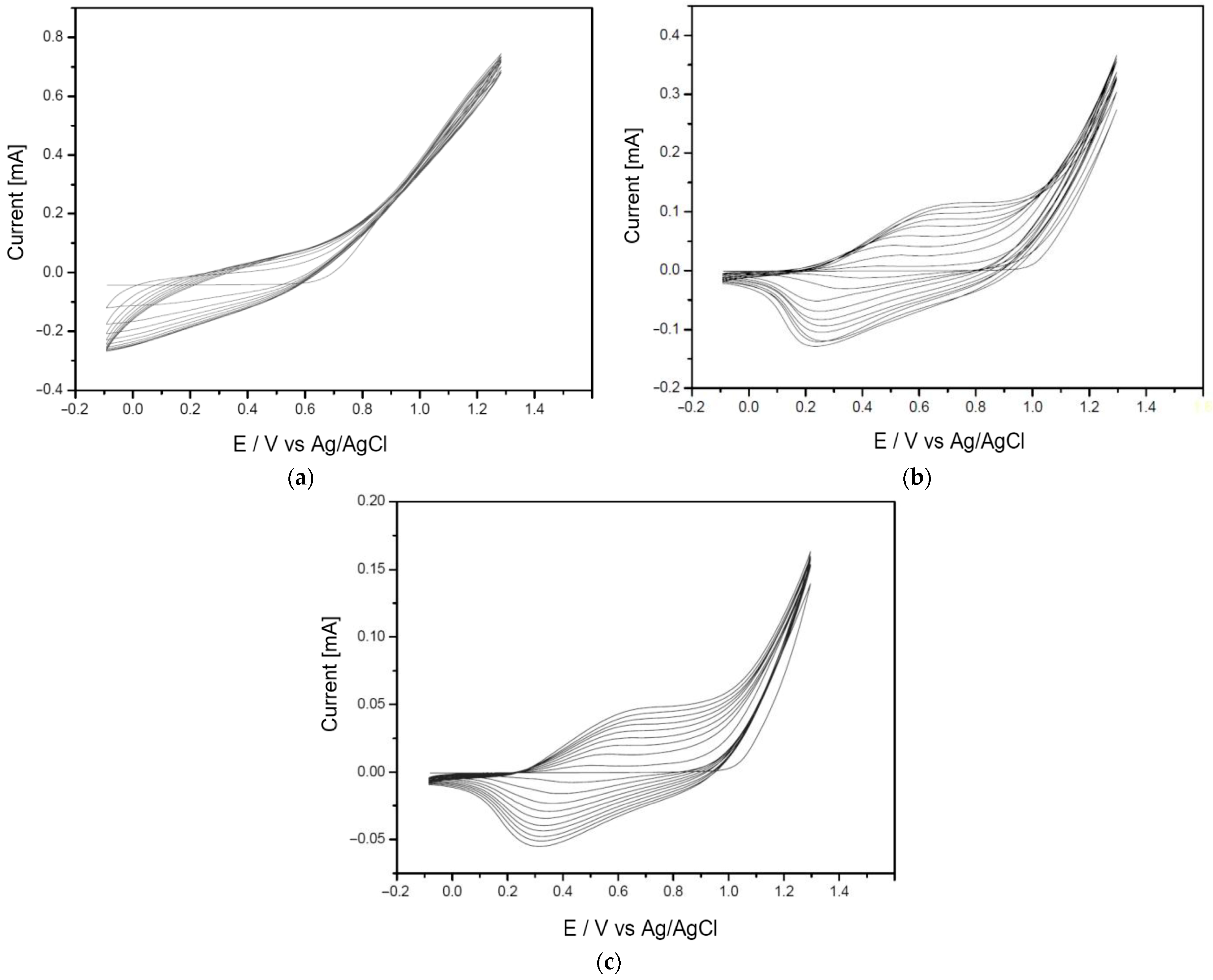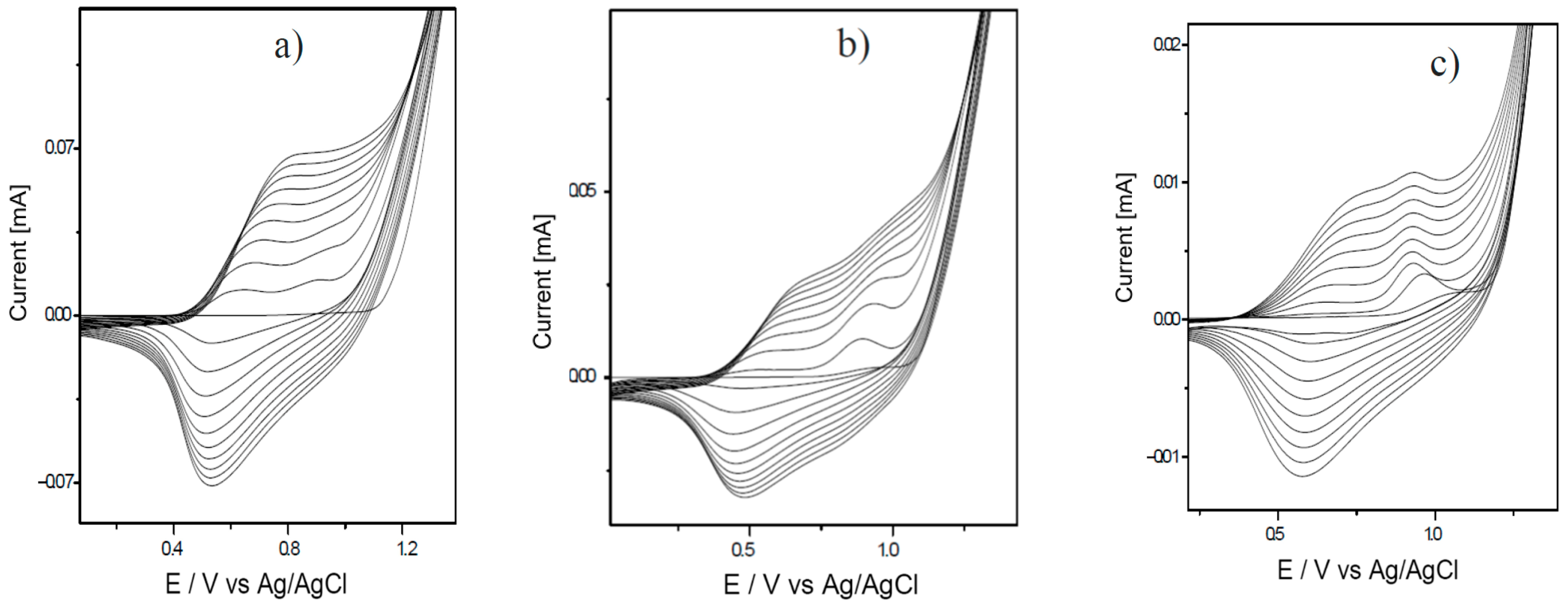 | Mini-Electrode Type | EpA [V] | EpC [V] | ΔE [V] |