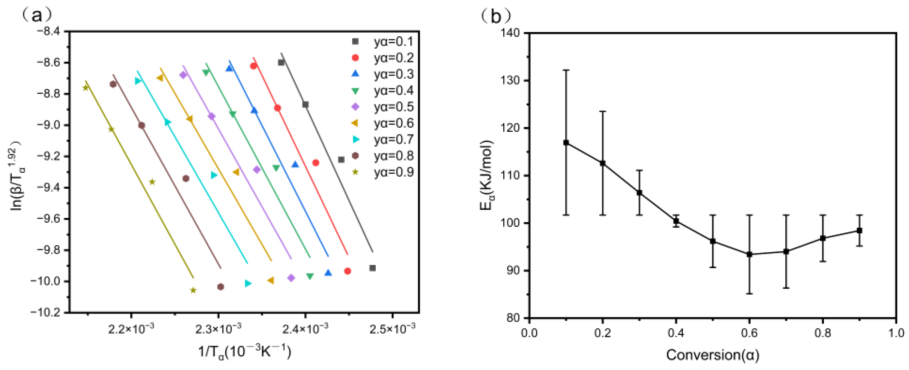 - Senum, G.I.; Yang, R.T. Rational approximations of the integral of the Arrhenius function. J. Therm. Anal. 1977, 11, 445–447. [Google Scholar] [CrossRef]