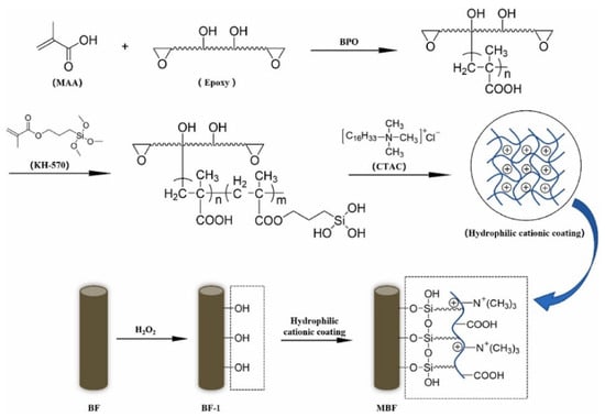 A hydrophilic cationic coating agent was first synthesized through copolymerization and subsequently applied to surface-modified basalt fibers to produce the final modified product. Reprinted from Ref. [62] with permission from Elsevier.