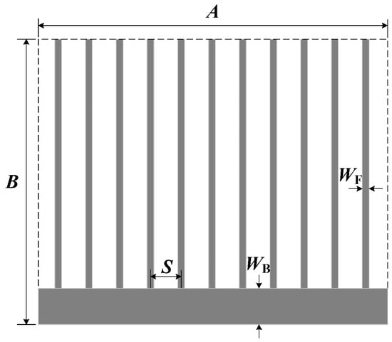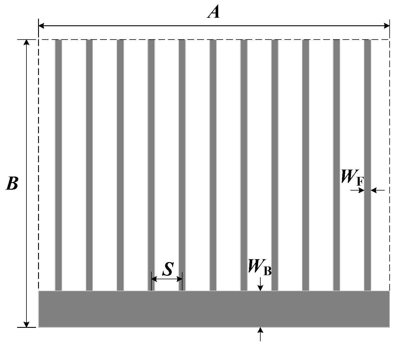 A solar cell is composed of multiple unit cells, with the structure of a typical unit cell illustrated in Figure 1. The busbar, with a width of WB and a length of A, serves to summarize current and interconnect battery cells to each other. The finger gird, having a width of WF and a length of B, is responsible for collecting current from corresponding micro-regions. The spacing between adjacent finger grids is denoted as S. The design of the cell electrodes is closely related to their fabrication process. The use of large-size solar cells can significantly improve their cost performance; however, large-size cells also introduce more severe electrode shading issues. One theoretical study indicates [15] that the power loss associated with the finger grid electrodes of the cell mainly depends on the cell materials and process technology, as shown in Equation (5). In contrast, the power loss of the busbar is directly related to the unit structure. When the length of the busbar electrode is A, the associated power loss is proportional to A, as shown in Equation (8). For the definitions of relevant parameters in Equations (1)–(8), refer to Reference [15].