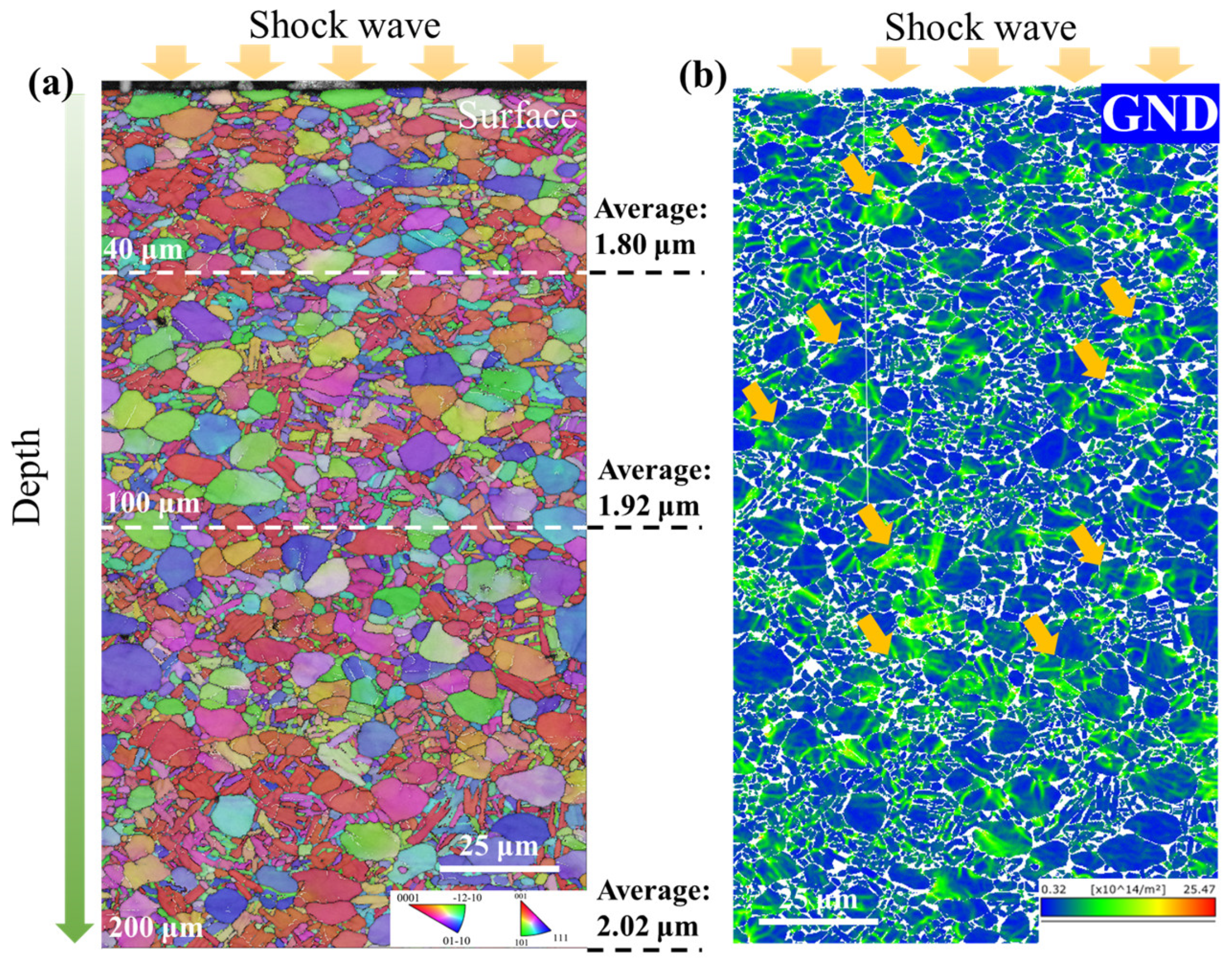 - Lu, J.; Luo, K.; Zhang, Y.; Sun, G.; Gu, Y.; Zhou, J.; Ren, X.; Zhang, X.; Zhang, L.; Chen, K.; et al. Grain refinement mechanism of multiple laser shock processing impacts on ANSI 304 stainless steel. Acta Mater. 2010, 58, 5354–5362. [Google Scholar] [CrossRef]