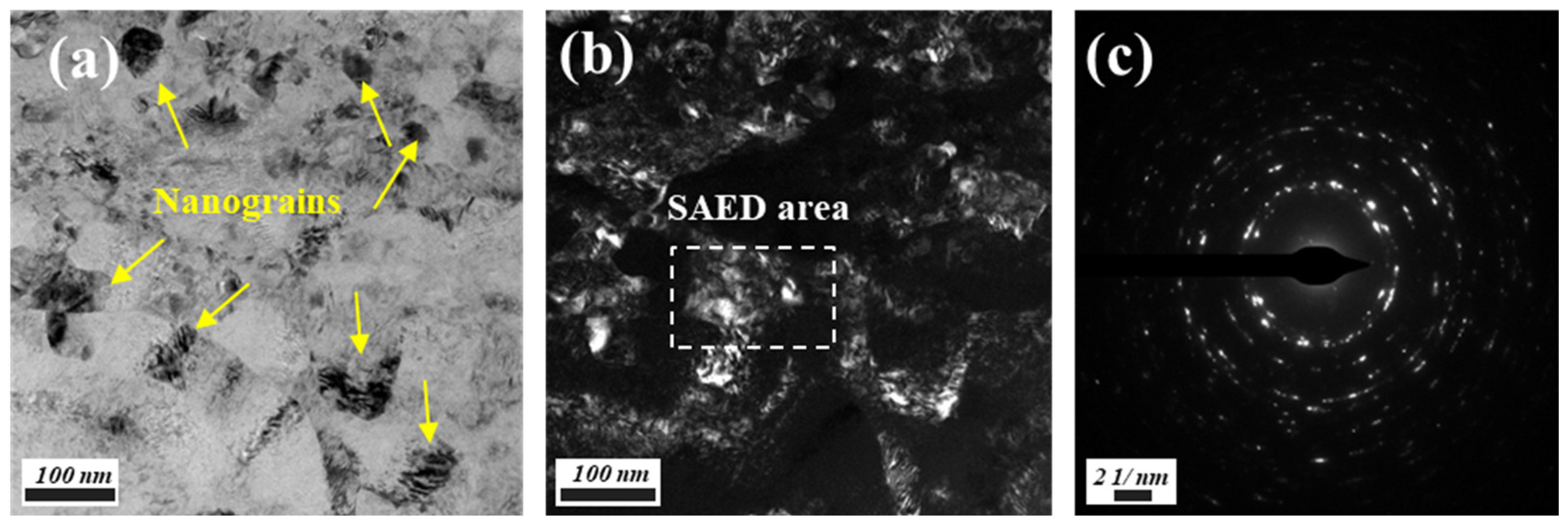 - Pan, X.; Wang, X.; Tian, Z.; He, W.; Shi, X.; Chen, P.; Zhou, L. Effect of Dynamic Recrystallization on Texture Orientation and Grain Refinement of Ti6Al4V Titanium Alloy Subjected to Laser Shock Peening. J. Alloys Compd. 2021, 850, 156672. [Google Scholar] [CrossRef]