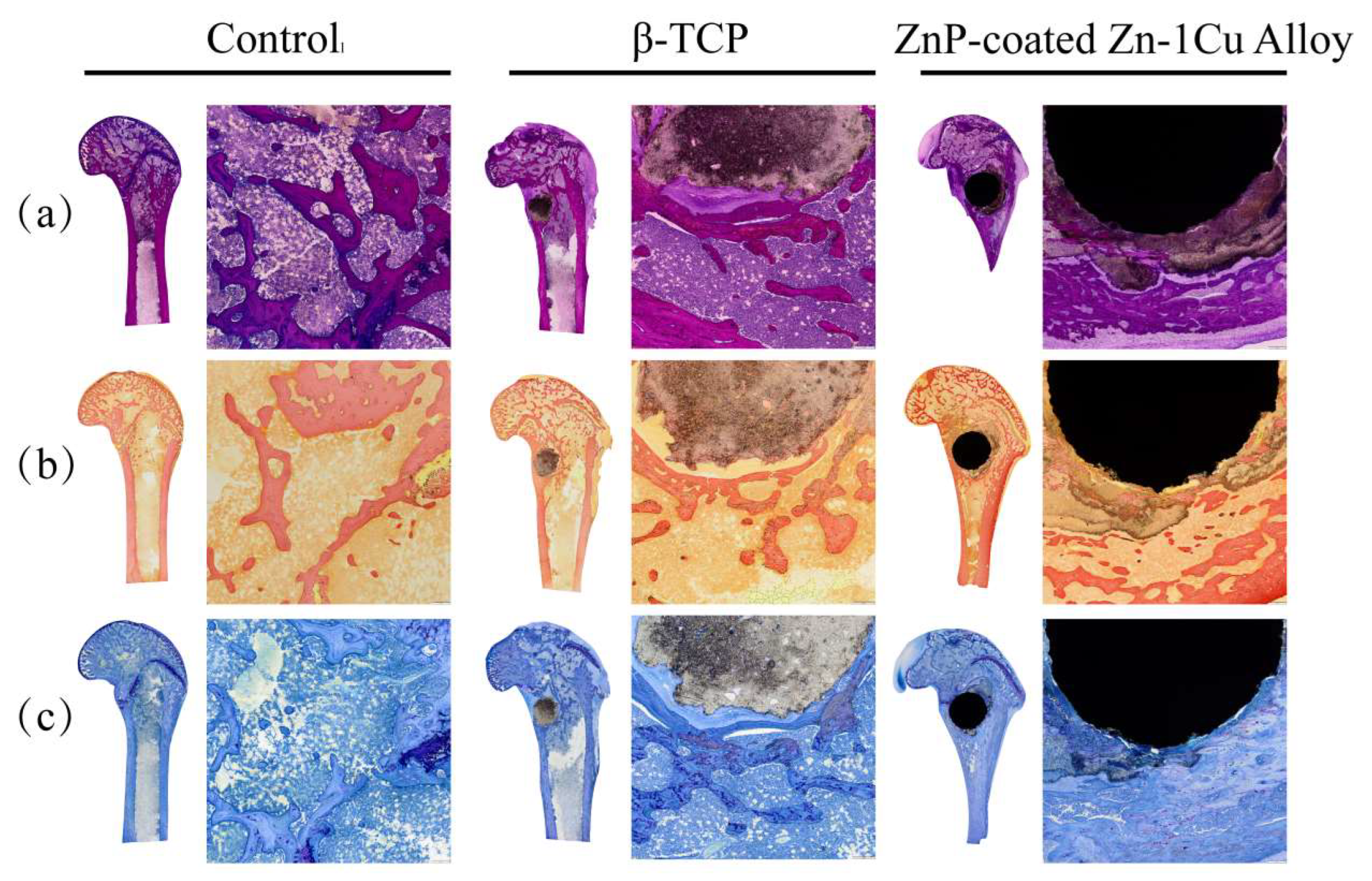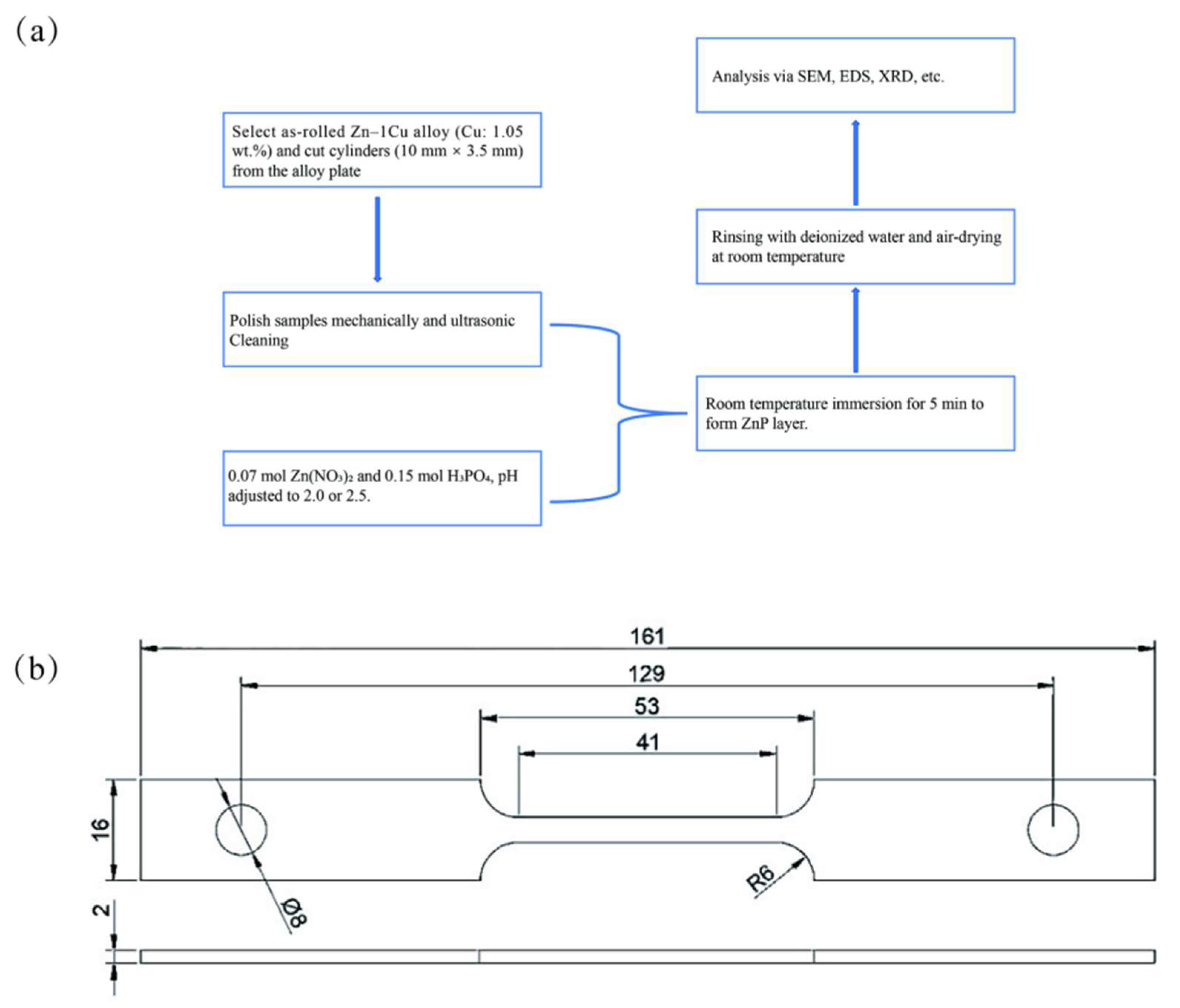 - Zhao, D.-W.; Du, C.-M.; Zuo, K.-Q.; Zhao, Y.-X.; Xu, X.-Q.; Li, Y.-B.; Tian, S.; Yang, H.-R.; Lu, Y.-P.; Cheng, L.; et al. Calcium-Zinc Phosphate Chemical Conversion Coating Facilitates the Osteointegration of Biodegradable Zinc Alloy Implants by Orchestrating Macrophage Phenotype. Adv. Healthc. Mater. 2023, 12, e2202537. [Google Scholar] [CrossRef]