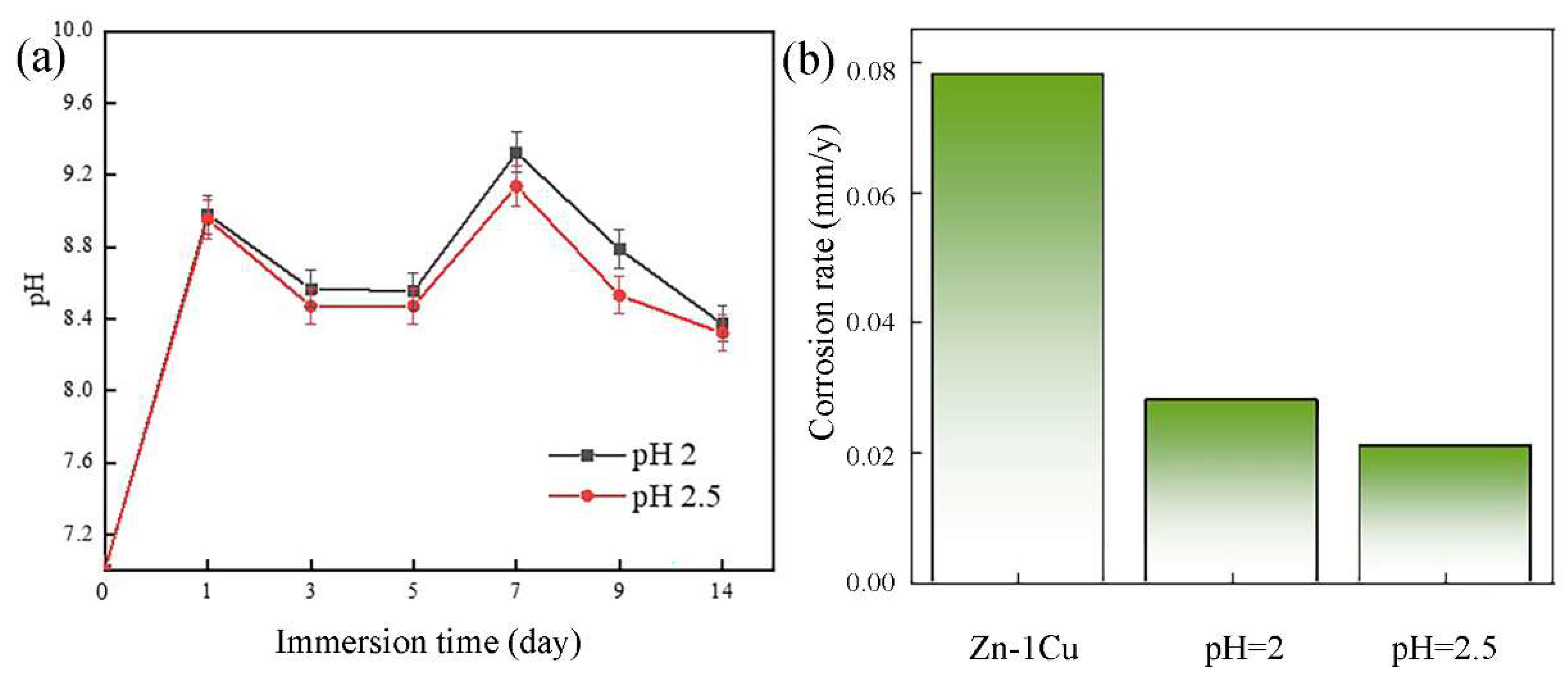 4.1. Effects of the ZnP Coating on the Degradation Resistance and Stress Corrosion of Zn-1Cu Alloy