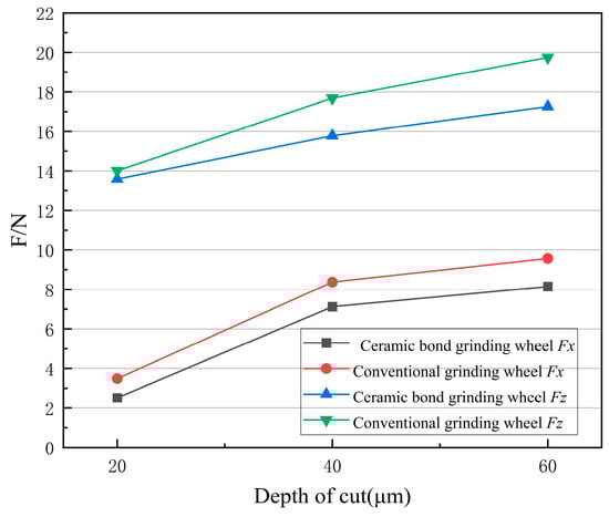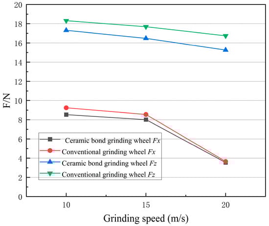Data summary statistics of the results of the last three groups of experiments, in Table 9, show the same trend. According to the experimental data, the effect of different cutting speeds is the same on the grinding force under the same conditions of depth of cut and feed rate.