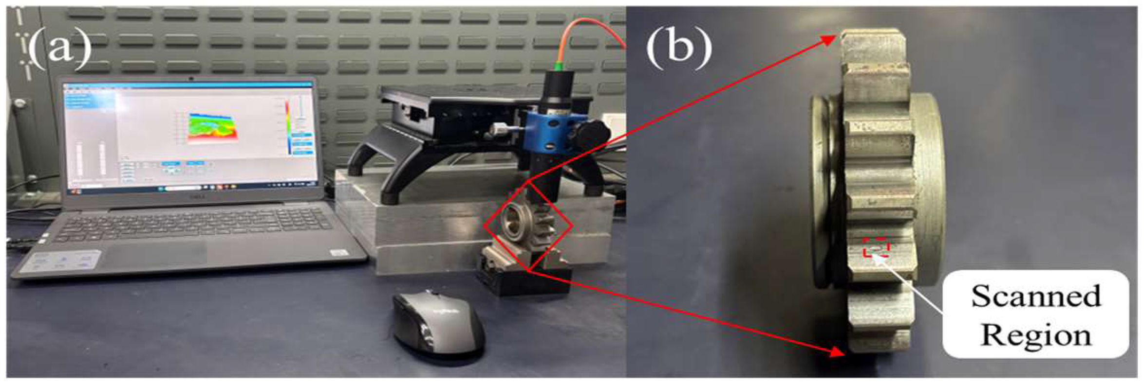 Figure 17a, with its shallow depth and smooth profile, is characteristic of this micropitting mode dominating the entire surface. Conversely, the 20CrMoH gear in
