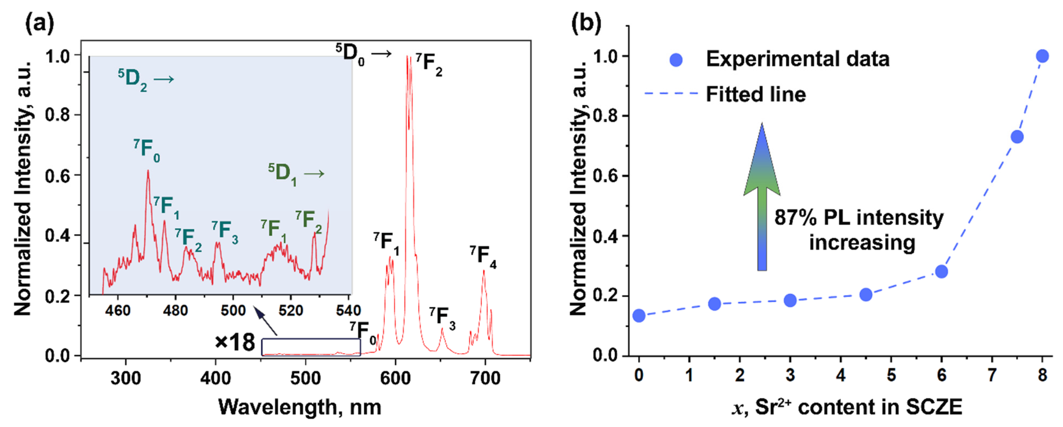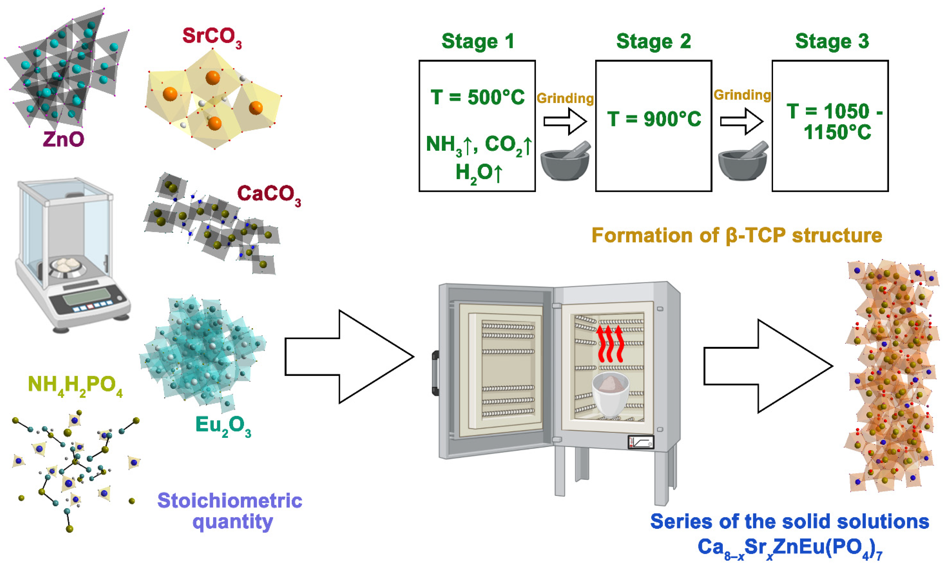 - Lazoryak, B.I.; Stefanovich, S.Y.; Titkov, V.V.; Mosunov, A.V.; Nikiforov, I.V.; Kharovskaya, M.I.; Pankrushina, E.A.; Kubrin, S.P.; Deyneko, D.V. Polymorphism of Whitlockite-Type Phosphors Ca9–1.5xZnMeEux(PO4)7 and Enhancement of Eu3+ Luminescence with Me = Li, Na. Mater. Res. Bull. 2025, 188, 113396. [Google Scholar] [CrossRef]