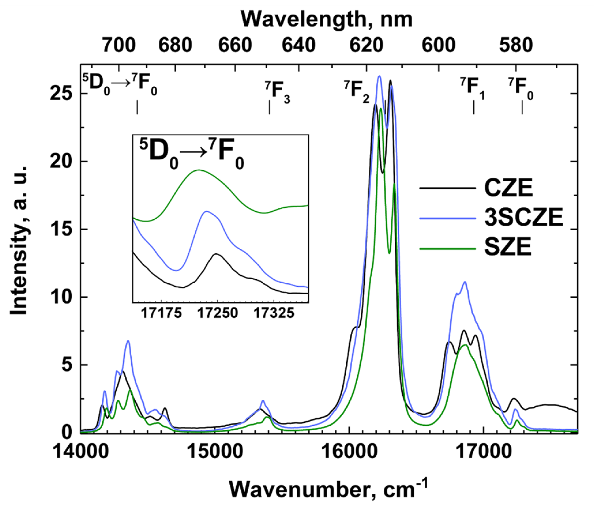 - Binnemans, K. Interpretation of Europium(III) Spectra. Coord. Chem. Rev. 2015, 295, 1–45. [Google Scholar] [CrossRef]