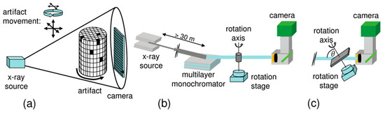 Principle of different variants of X-ray absorption-computed tomography: (a) fan-beam tomography (X-ray tube source), (b) parallel beam tomography (synchrotron source), and (c) laminography [17]. (Reprinted/adapted with permission from American Chemical Society, 2010).