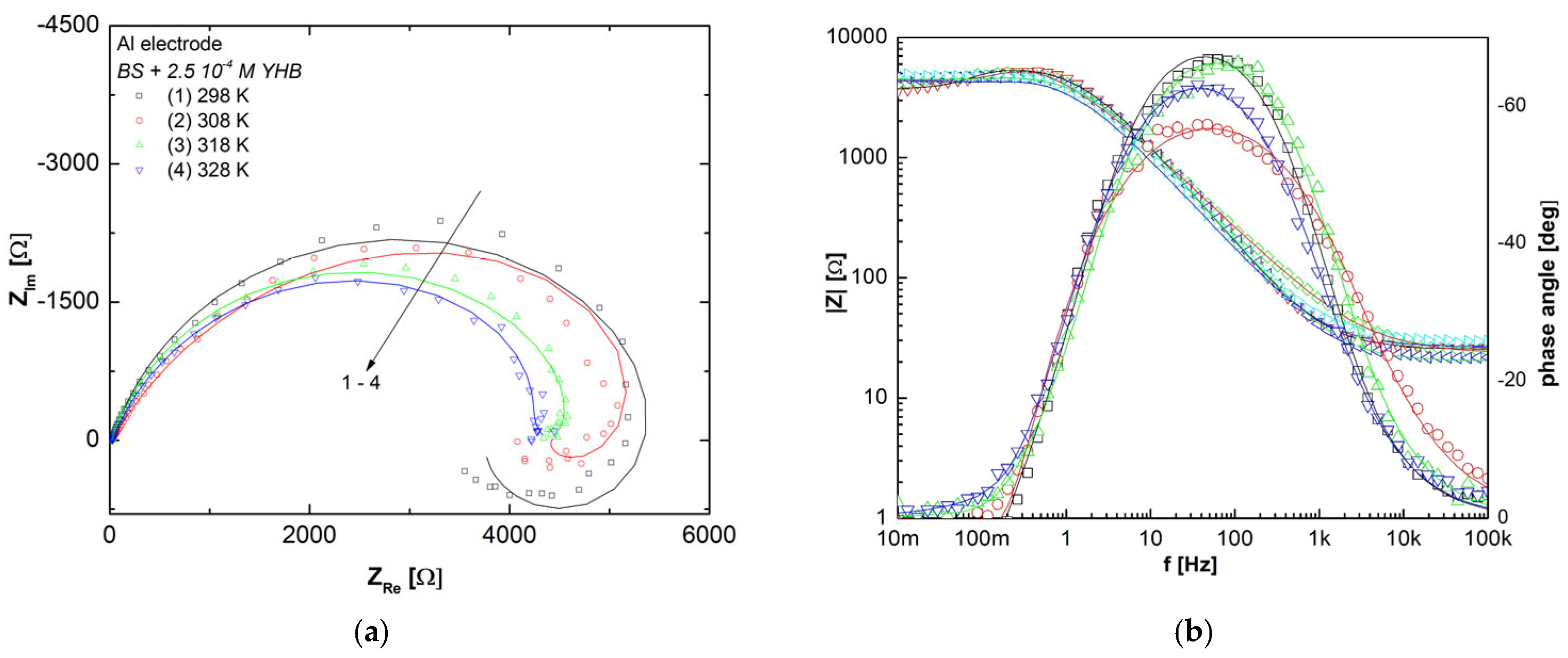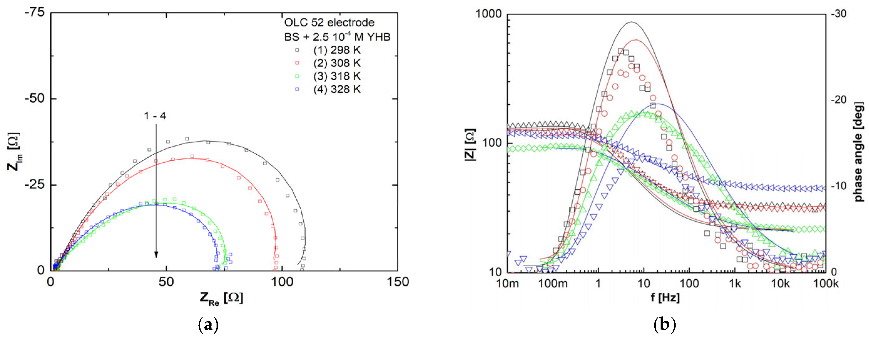 - Sun, F.; Peng, X.; Bai, X.; Chen, Z.; Xie, R.; He, B.; Han, P. EIS analysis of the electrochemical characteristics of the metal–water interface under the effect of temperature. RSC Adv. 2022, 12, 16979–16990. [Google Scholar] [CrossRef] [PubMed]