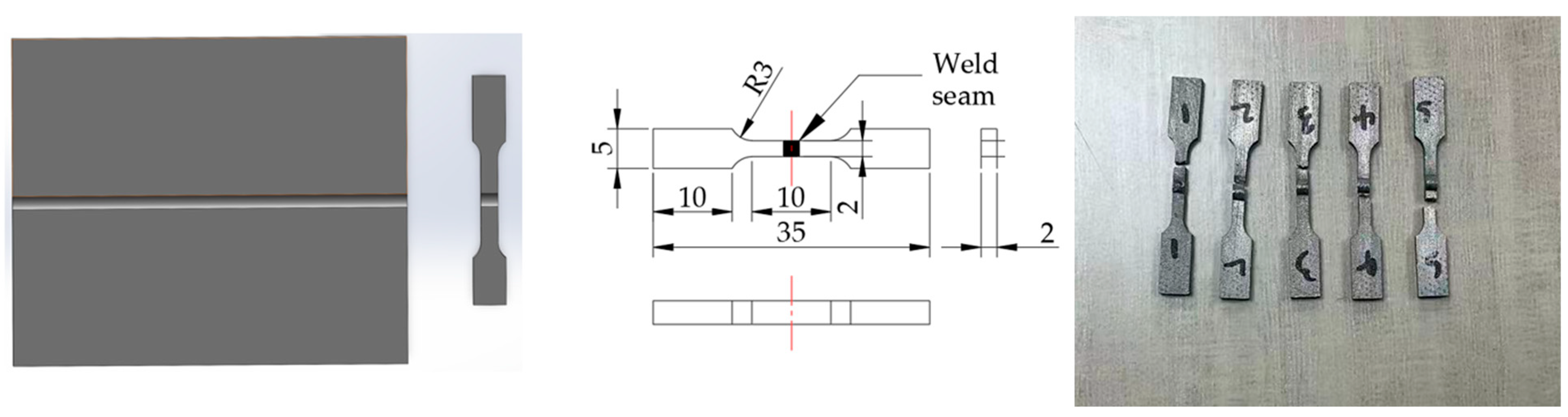 - Cao, X.L.; Wang, G.; Xing, C.; Tan, C.W.; Jiang, J. Effect of process parameters on microstructure and properties of laser welded joints of aluminum/steel with Ni/Cu interlayer. Trans. Nonferrous Met. Soc. China 2021, 31, 2277–2286. [Google Scholar] [CrossRef]