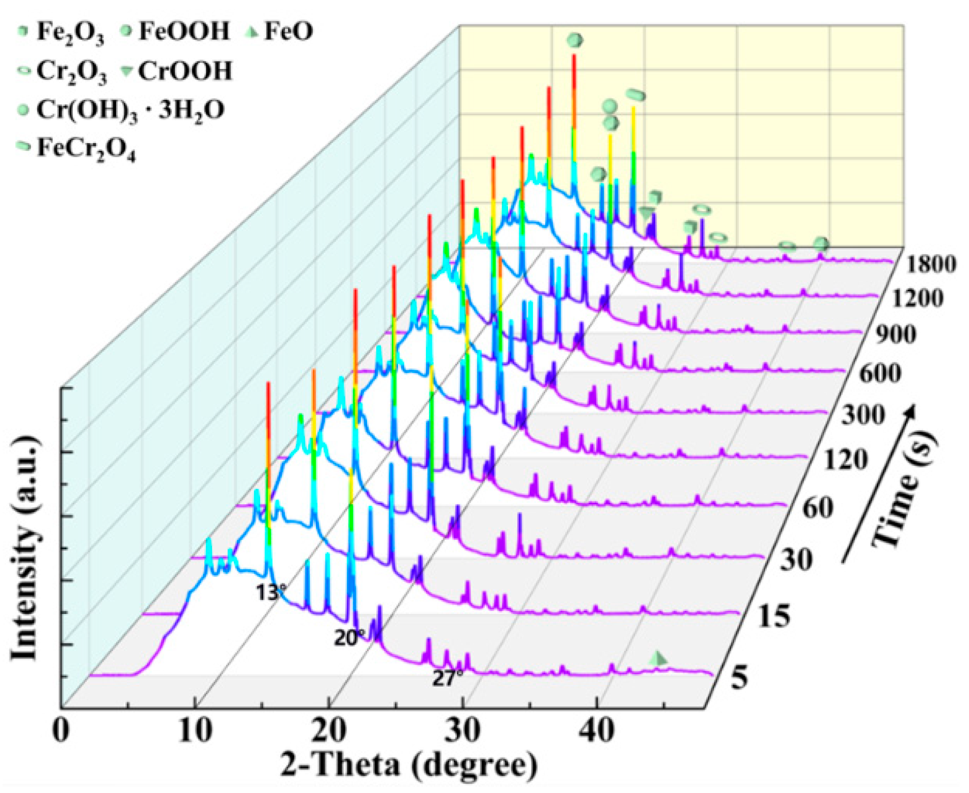- Li, Z.; Zhang, W.; Wang, Y.; Yu, H.; Cui, Y.; Li, M.; Sun, D. Operando characterization of Cr-containing alloy passivation film by synchrotron radiation. Corros. Sci. 2024, 236, 112233. [Google Scholar] [CrossRef]