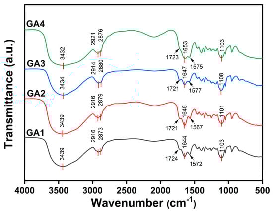 FTIR spectra of the synthesized grinding aids GA1–GA4.