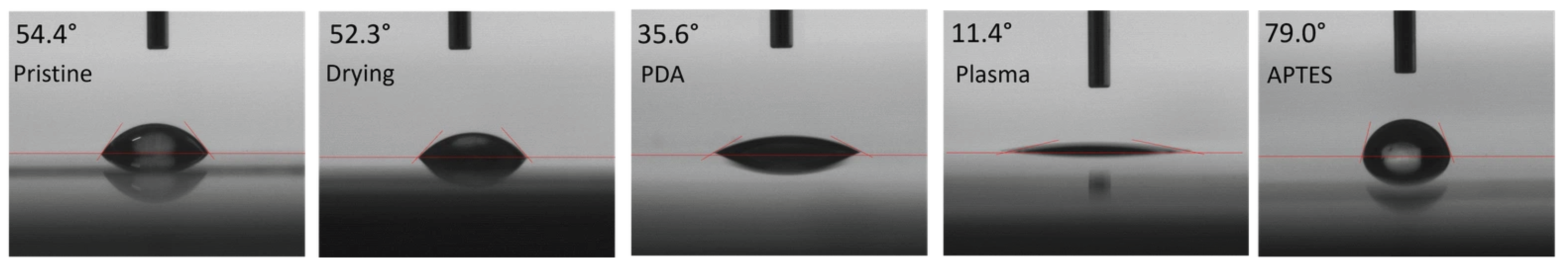 - polydopamine coating followed by thermal treatment at 50 °C in vacuum;