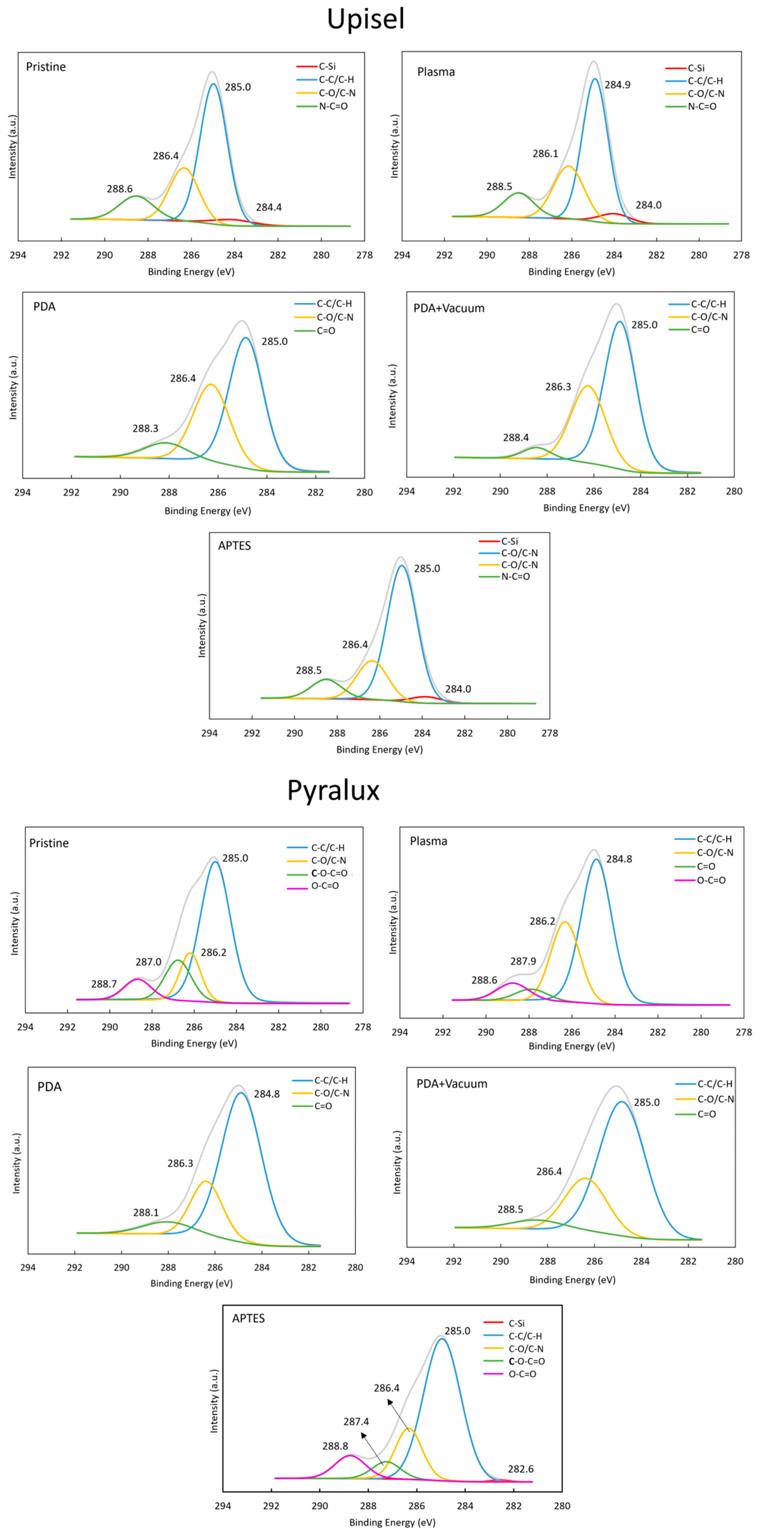 3.2.3. PDA Coating with Thermal Treatment in Vacuum