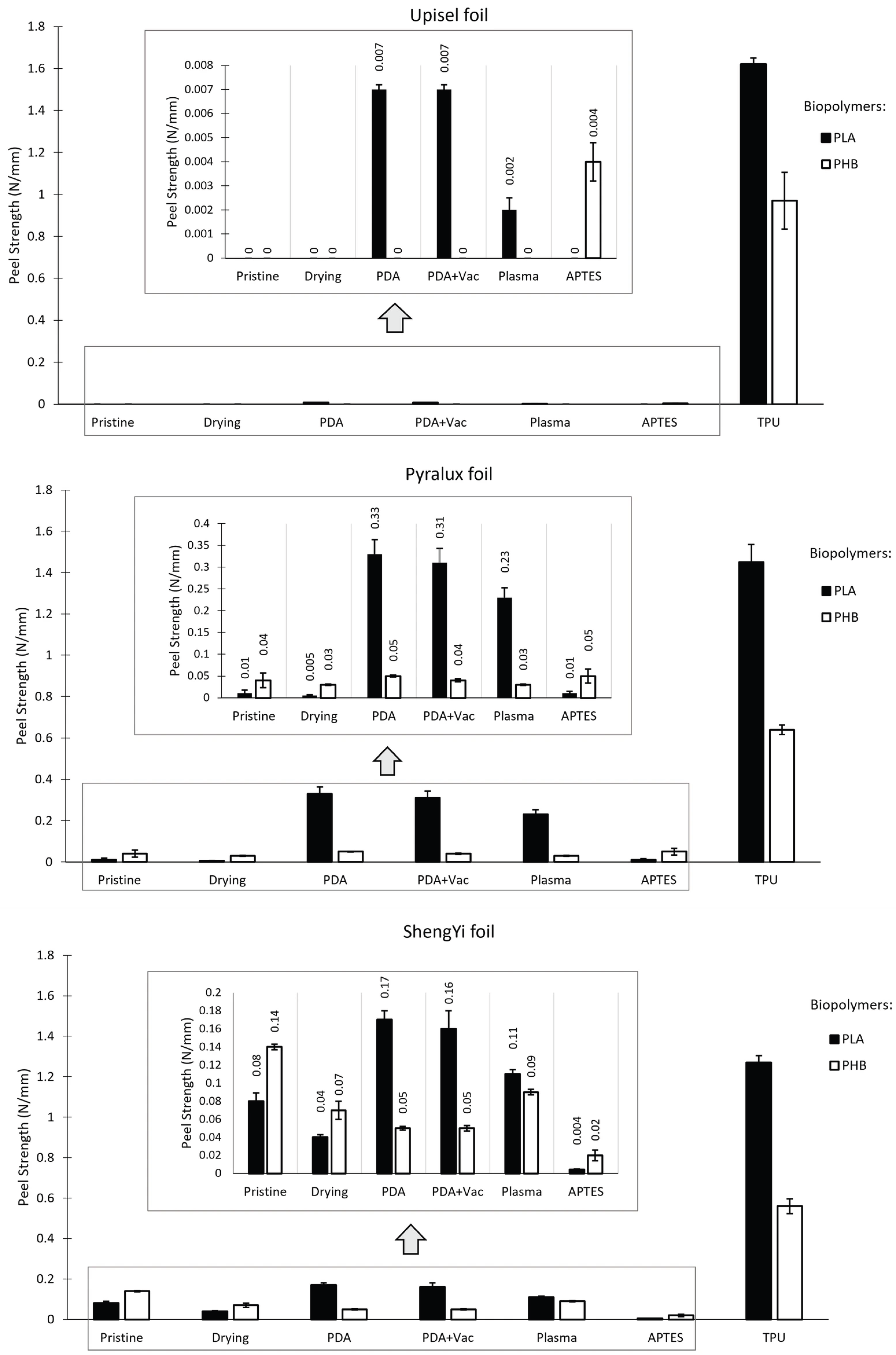 | Sample | Upisel/PLA | Upisel/PHB | Pyralux/PLA | Pyralux/PHB | Shengyi/PLA | Shengyi/PHB |
