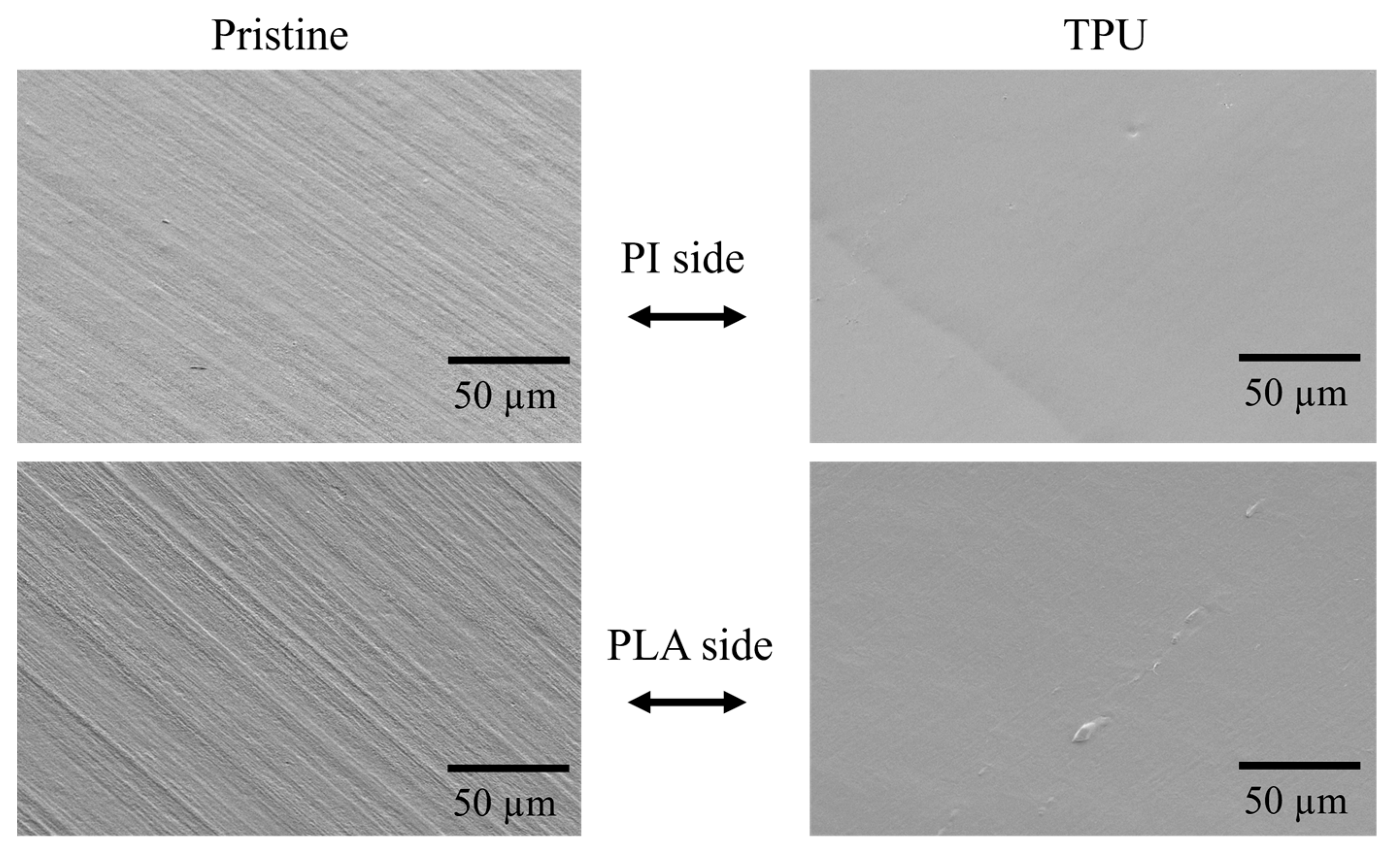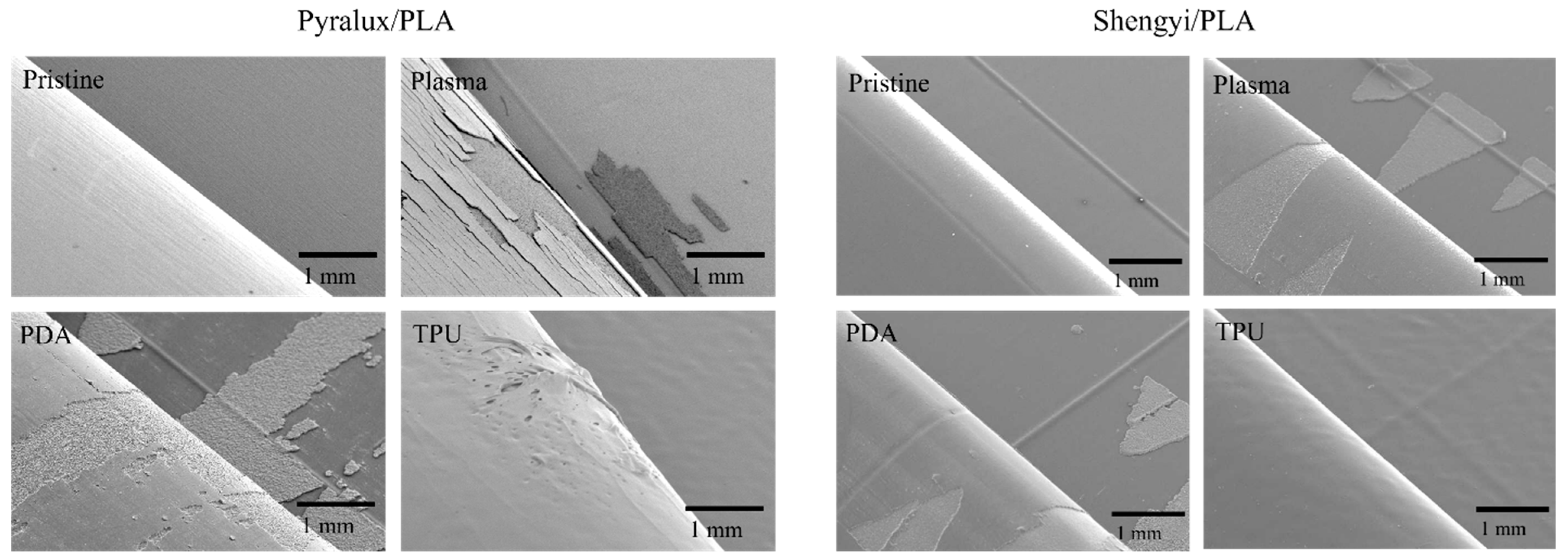 - Kafkopoulos, G.; Karakurt, E.; Martinho, R.P.; Duvigneau, J.; Vancso, G.J. Engineering of Adhesion at Metal—Poly (Lactic Acid) Interfaces by Poly (Dopamine): The Effect of the Annealing Temperature. ACS Appl. Polym. Mater. 2023, 5, 5370–5380. [Google Scholar] [CrossRef]