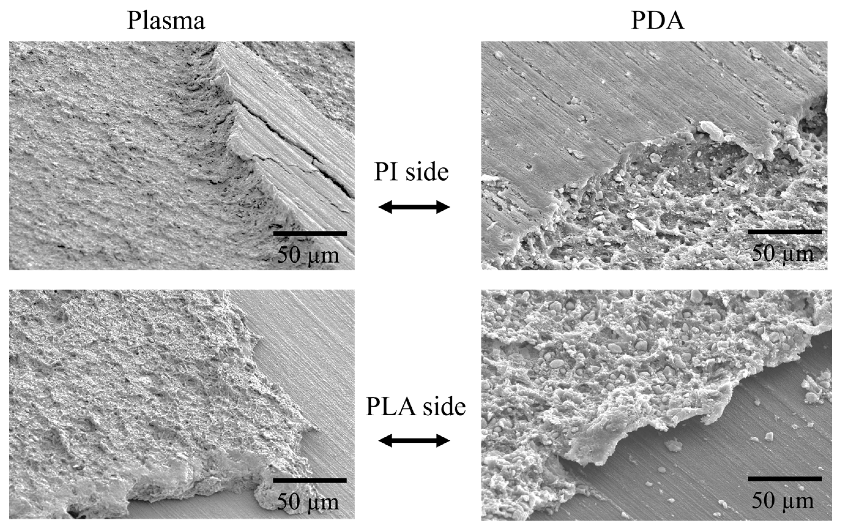 | O2 plasma | Adhesive | Adhesive | Adhesive/ Cohesive | Adhesive | Adhesive/ Cohesive | Adhesive |