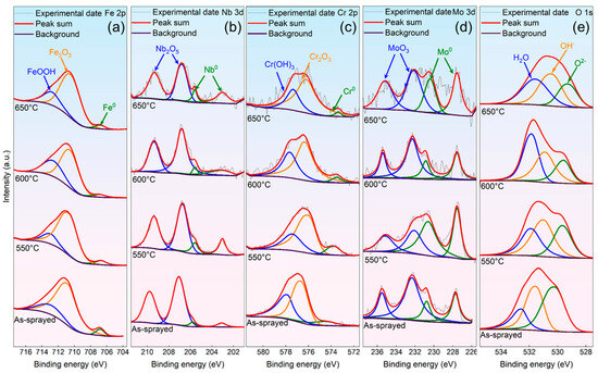 - Lee, C.Y.; Sheu, H.H.; Tsay, L.W.; Hsiao, P.S.; Lin, T.J.; Lee, H.B. The Effect of Heat Treatment on the Corrosion Resistance of Fe-Based Amorphous Alloy Coating Prepared by High Velocity Oxygen Fuel Method. Materials 2021, 14, 7818. [Google Scholar] [CrossRef]