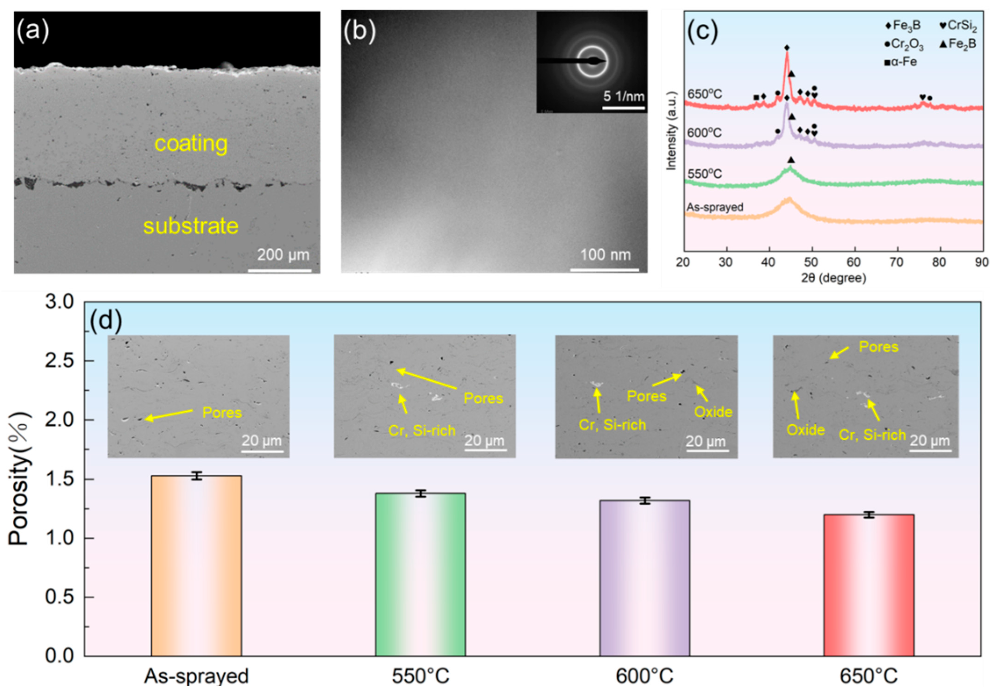 - Li, C.Y.; Wang, H.B.; Ding, J.Q.; Wang, S.P.; Li, J.L.; Kou, S.Z. Effects of heat treatment on HVOF-sprayed Fe-based amorphous coatings. Surf. Eng. 2021, 37, 590–598. [Google Scholar] [CrossRef]