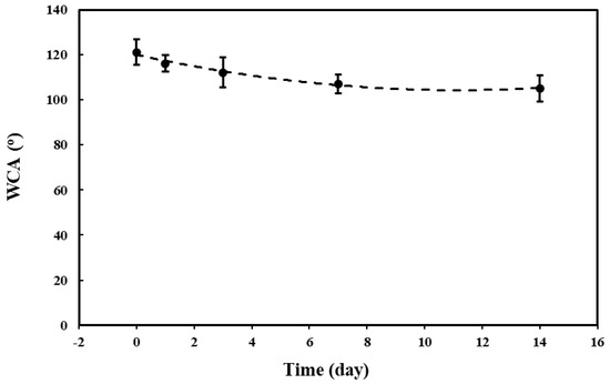 The WCA of the PVDF coating as a function of immersion times.
