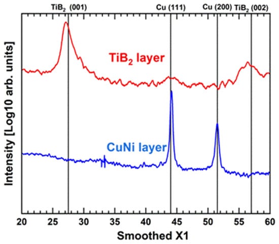Normal XRD spectra of the CuNi and the TiB2 sensor layers.