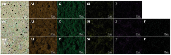 These observations suggest that the physical phase composition of the coatings is profoundly influenced by the types and concentrations of cations and anions present in the electrolyte. The presence of α-Al2O3 and mullite phases in the A11 and A21 coatings is likely the result of reactions between the Si and F-elemental components of Al2O3 within the electrolyte. The formation of the AlF3 phase can be attributed to the F− ions present in the electrolyte, which underscores the pivotal role of electrolyte composition in determining the physical phase composition of the coatings. These findings further confirm that the choice and concentration of electrolyte components can significantly alter the coating’s properties, highlighting the importance of electrolyte selection in the micro-arc oxidation process.