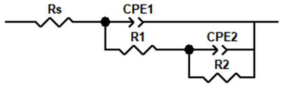 Figure 10 depicts the electrochemical impedance spectra of the 6061 aluminum alloy substrate and the coatings produced under the A10, A11, and A21 schemes. Figure 11 illustrates the equivalent circuit model used to analyze the coatings, where Rs denotes the solution resistance, R1 and CPE1 represent the resistance and capacitance of the external sparse layer, respectively, and R2 and CPE2 represent the resistance and capacitance of the internal dense layer, respectively. The fitting results for this model are provided in Table 4.