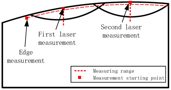 The most apparent enhancement in the material’s properties resulting from laser quenching is the increase in hardness. In this paper, the hardness of the sample was tested along the depth direction and the arc edge direction. The arc edge measurement starting point was about 1 mm away from the laser scanning area, and the depth direction measurement starting point was about 0.05 mm away from the sample surface, as shown in Figure 5.