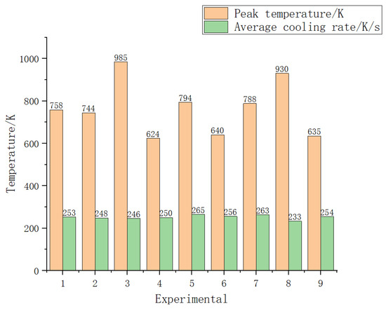 Figure 9 shows the peak temperatures during the simulation of the orthogonal experimental parameters.