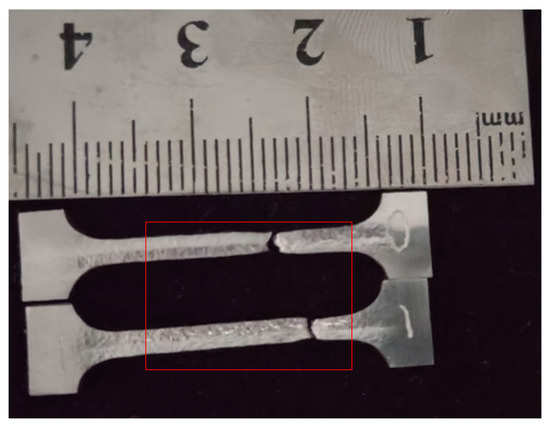 Figure 15. From the post-tensile comparison, it is evident that both the weld and base material specimens fractured in the same location, concentrated in the base material zone, with noticeable elongation compared to their original state. The fracture occurred in the base material rather than in the weld or heat-affected zone, indicating that the weld exhibits excellent tensile performance.