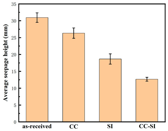 The arithmetic mean of the penetration heights for six specimens was recorded as the group’s impermeability index.