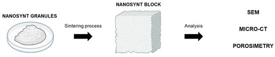 This study aims to address this gap by comprehensively characterizing the structural and morphological properties of the Nanosynt Block. Using advanced techniques—including scanning electron microscopy (SEM), micro-computed tomography (Micro-CT), and mercury intrusion porosimetry—we will analyze its porosity, surface morphology, and volumetric stability. This detailed analysis seeks to provide insights into the material’s potential to support osteoconduction, angiogenesis, and ultimately bone regeneration, emphasizing the critical role of the structure–function relationship in the selection of bone substitutes to optimize the decision-making process.