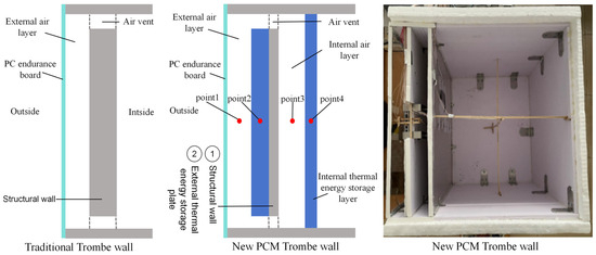 Structural diagram of the new PCM Trombe wall and traditional Trombe wall.