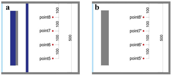 In order to analyze the simulation results, temperature measurement points were set in the numerical models of the new PCM Trombe wall and the traditional Trombe wall, as shown in Figure 6.