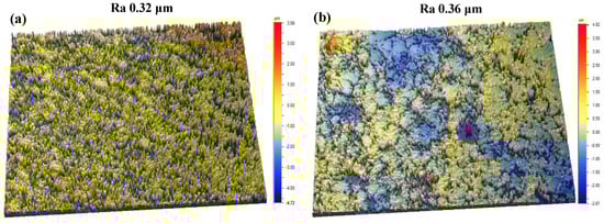 Finally, the primary property of MoS2/PTFE coatings is summarized in Table 2. The result shows that the surface hardness of the coated carbide is 0.42 ± 0.05 GPa, which is approximately 97% lower than the carbide one (Table 1), which was about 16.2 ± 0.1 GPa. The reduction in hardness is expected, as the composite coatings are designed primarily for lubrication and wear resistance rather than for hardness. The relatively soft coatings aid in reducing the friction during sliding but this also means that the coatings are more susceptible to wear under high load conditions [,].