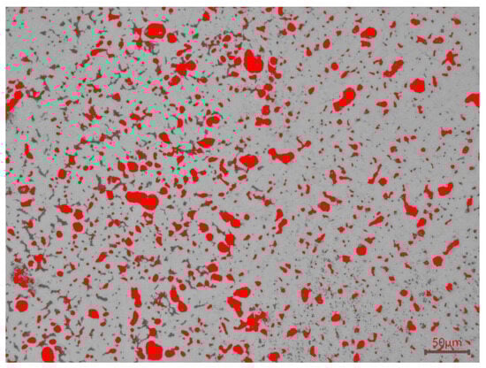 Figure 14, the red marks in the image are pores. Through measurement, it is found that the porosity of the matrix layer is 11.92%, and there are approximately 0.0048 holes per µm