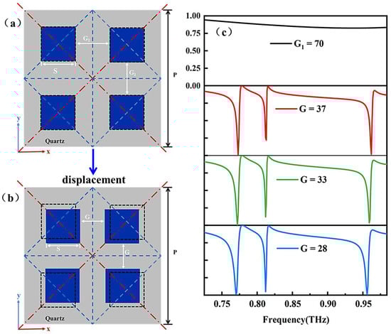 3.1.1. Characteristics of the Shift from BICs to Tri-Band Quasi-BICs Produced by Particular Displacements