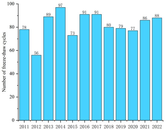 Number of Freeze–Thaw cycles of Beijing cushion layer from 2011 to 2023.