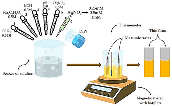 Schematic diagram of the synthesis of CdS and CdS:Ag thin films.
