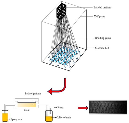 - Jang, Y.; Kim, J.-H.; Lee, D.; Chon, J.S.; Lee, S.; Kwon, D.-J. Comprehensive analysis of the effect of braiding angle on the wettability and mechanical properties of 3D braided carbon fiber fabric-reinforced composites. Mater. Today Commun. 2024, 41, 110798. [Google Scholar] [CrossRef]