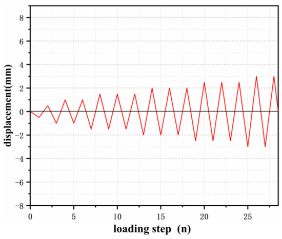 The development of the loading regime is essential for studying the seismic performance of the nodes. In reciprocating loading tests, displacement is primarily used for controlled loading to enhance test accuracy and safety. The experimental method for the low circumferential reciprocating down test, applicable to structural members and nodes of buildings, is outlined in the Specification for the seismic test of buildings [30].