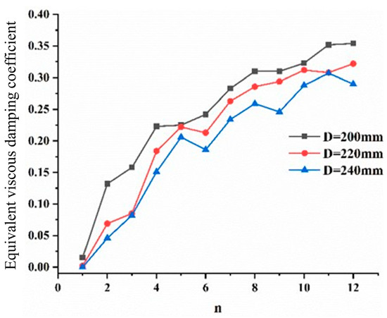 The energy dissipation capacity of different ball diameters under cyclic loading is compared using the equivalent viscous damping coefficient, as shown in Figure 28 below.