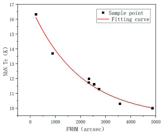Correlation between TC and FWHM (0–5000 arcsec) in NbN films.