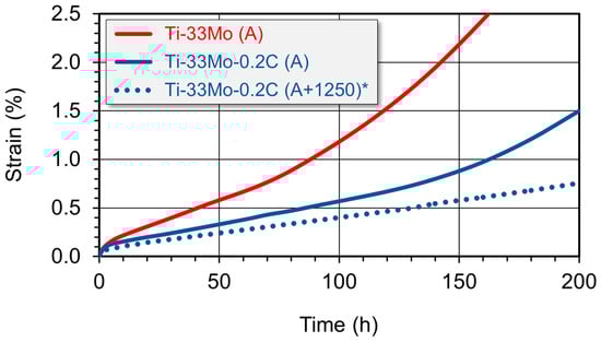 Effect of carbon on the creep curves of the Ti-33Mo alloy (* results for this variant are described in Section 3.2.4).