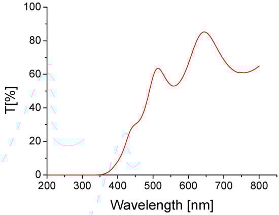The sample transmission spectrum was determined at room temperature using a Cary 5000 spectrophotometer, Agilent Technologies, Santa Clara, CA, USA, Cary Win, software ver. 4.20 (468).