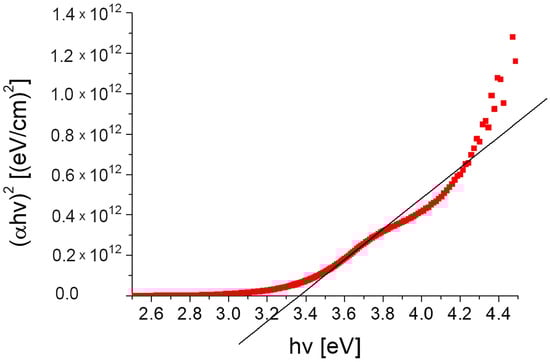 Figure 13. Absorption spectra of the TiO2:Ag–Pt layer on glass substrate in Tauc coordinates.